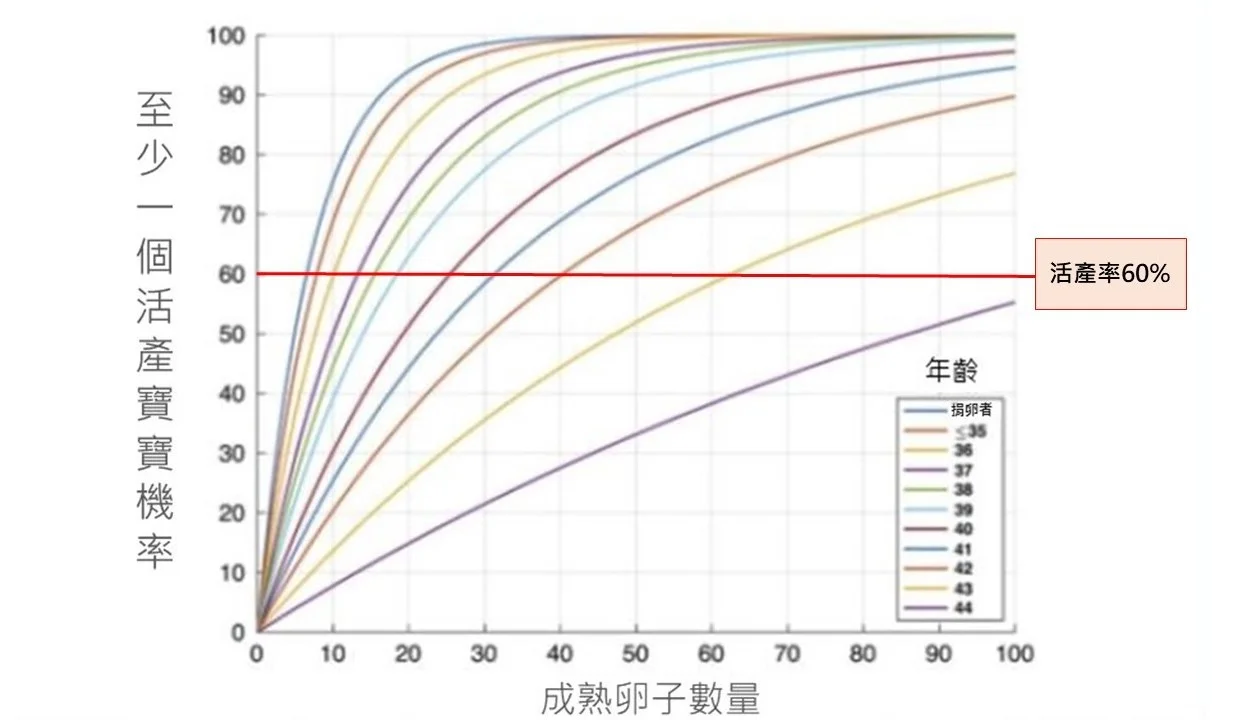 大家來查表看看自己要凍幾顆 ,活產率設定在60%,大家看看自己年紀要凍幾顆